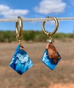 Pendente a diamante in legno di Ginepro e resina color mare.