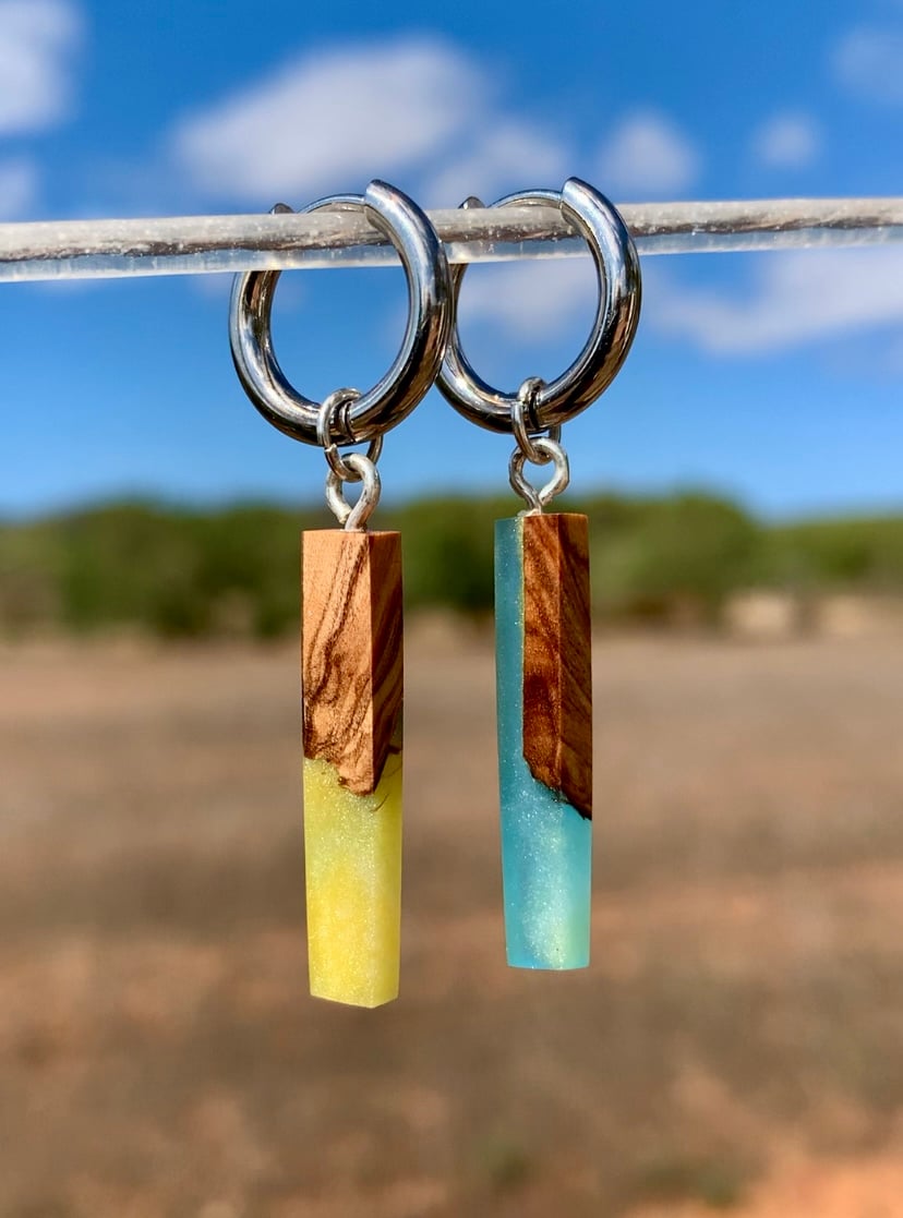 Orecchini Artigianali in Legno e Resina - Design Unico e Sostenibile.